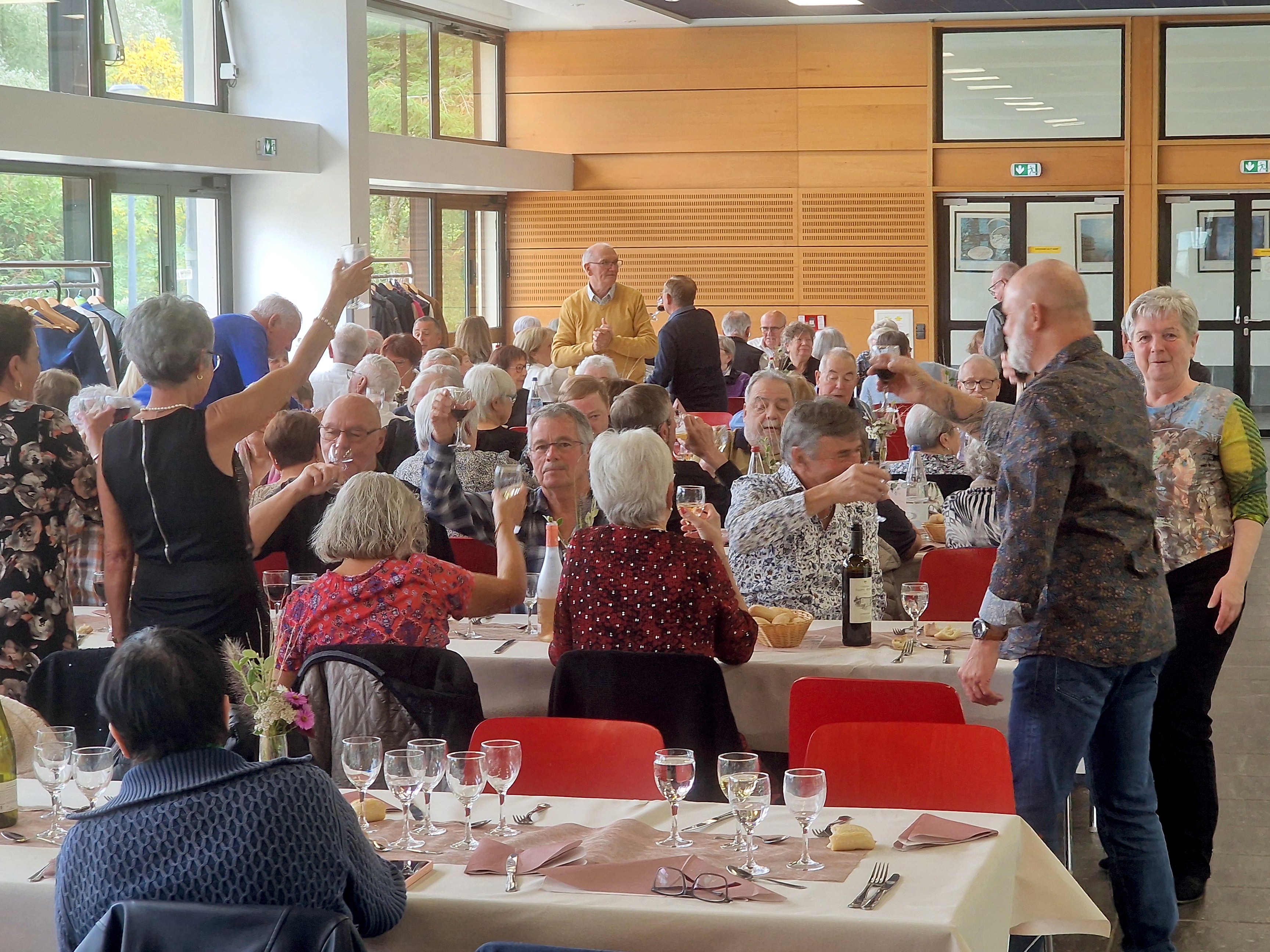 La municipalité a organisé sa traditionnelle rencontre des Anciens ce dimanche 5 octobre 2025. Plus de cent personnes étaient présentes pour partager un bon repas : les seniors invités, dont quelques nouveaux, ont été servis par les membres de la commission communale de fêtes, composée d'élus et de bénévoles. Les doyens de la salle ont été mis à l'honneur par M. le Maire. Grâce à l'animation musicale, l'ambiance était particulièrement festive.
