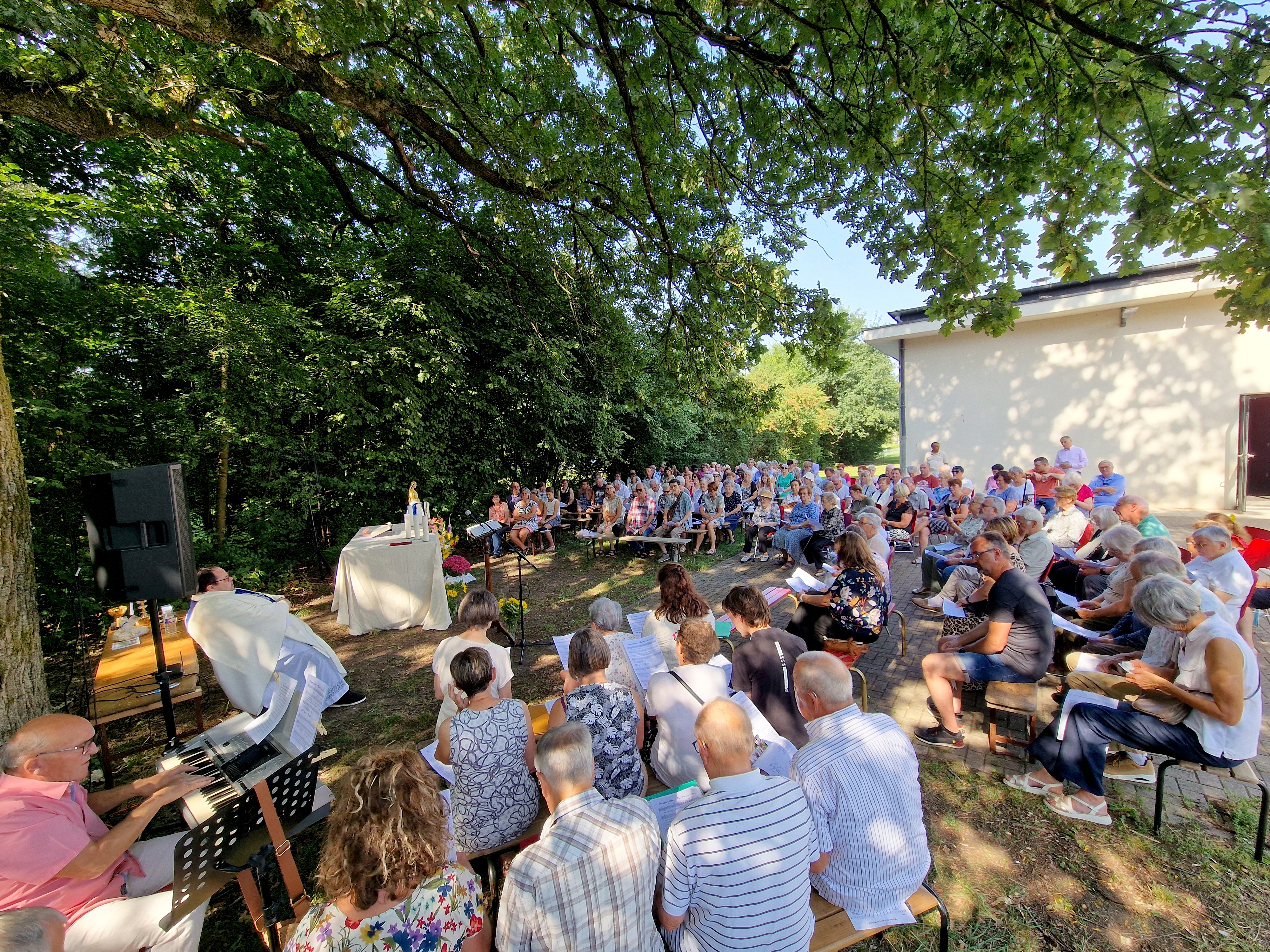 Ainsi la messe a pu avoir lieu en plein air cette année, le matin même de la fête patronale. L'assistance, venue en nombre, a été entièrement préservée des rayons du soleil, à l'ombre de la végétation dans ce cadre bucolique. Le repas a ensuite rassemblé les convives, principalement dans la salle. Des boissons et de la petite restauration (saucisses, frites, glaces et de nombreux gâteaux) ont aussi été proposées toute la journée. L'animation musicale a entraîné de fidèles danseurs tout au long de l'après-midi. Pour se détendre, une partie de pétanque a réuni plusieurs amateurs.
