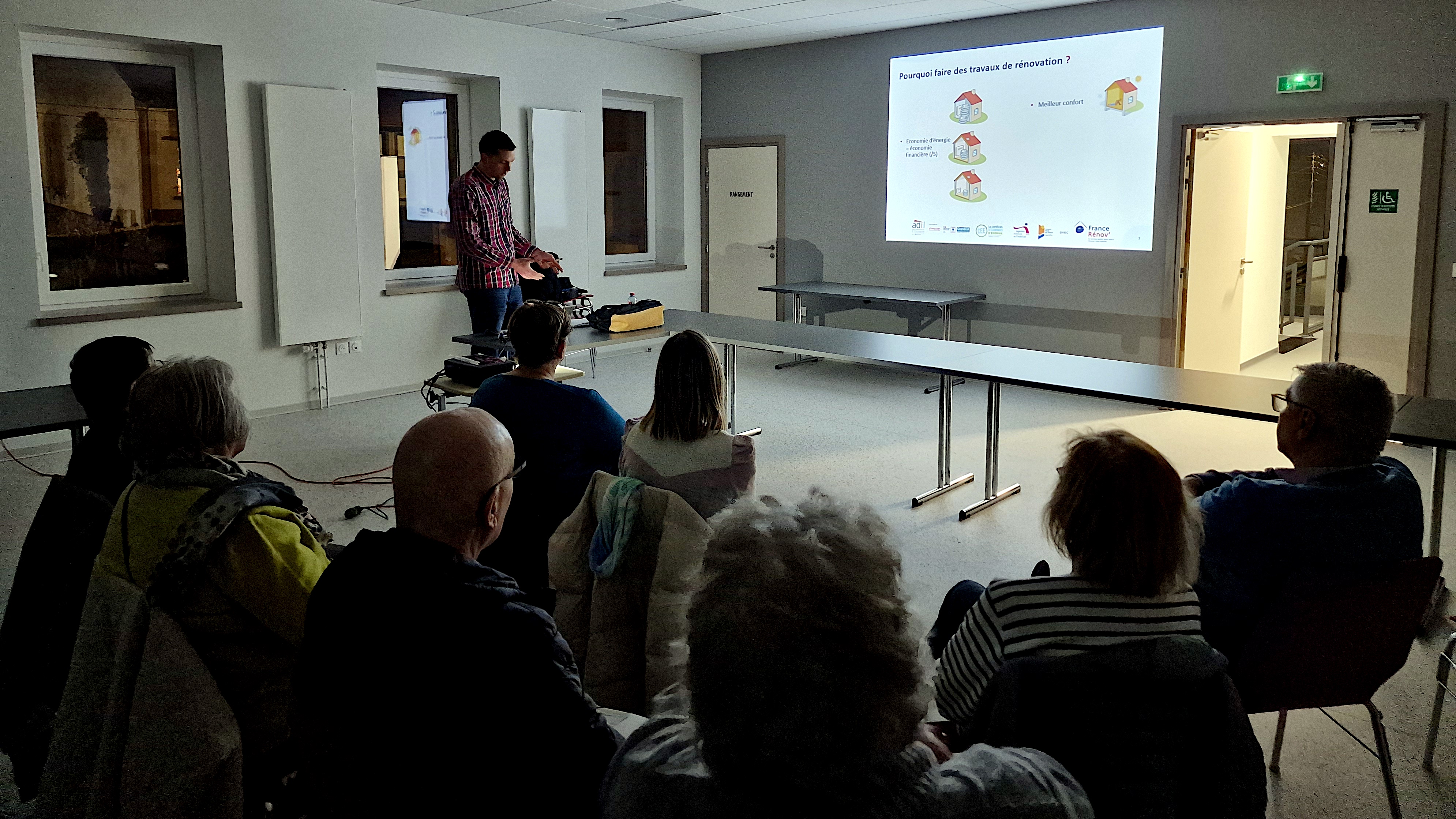 Les auditeurs du jour ont pu prendre connaissance des avantages des travaux de rénovation : ils permettent de faire des économies d’énergie (donc financières), améliorent le confort du logement, la qualité de l’air et contribuent ainsi à la pérennité et la plus-value du bâti. Les échanges ont concerné aussi certaines idées reçues et la prévention contre les démarchages peu scrupuleux.