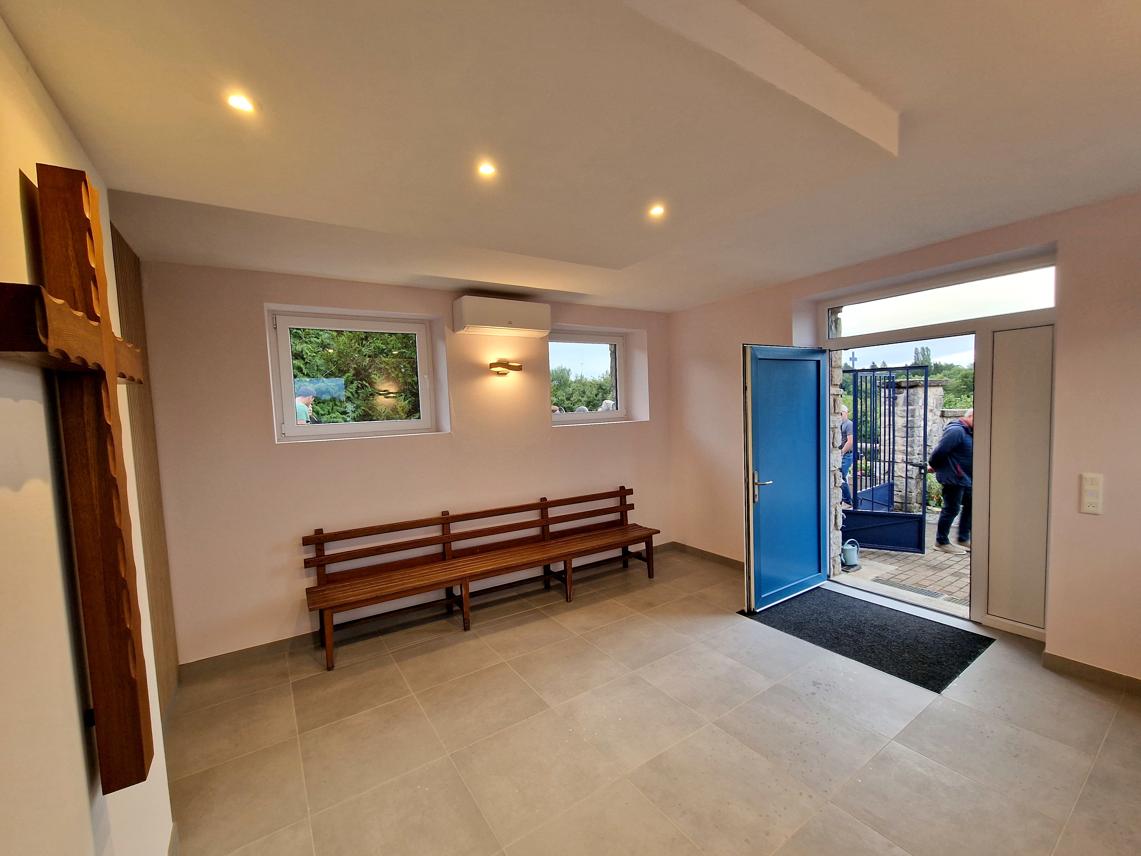 D’un montant total de 16 266,86 € hors taxes, les réalisations effectuées en 2025 par plusieurs entreprises comprennent la réfection complète de la pièce principale, du sol au plafond : carrelage, murs, électricité, éclairage et installation d’une climatisation réversible. Le local, désormais aux teintes claires, facilite le recueillement. Ces travaux englobent aussi la création de toilettes accessibles aux personnes à mobilité réduite, dans un local annexe utilisé jadis pour y stocker un corbillard. Ces travaux concluent les rénovations ou remplacements menés antérieurement (portes et fenêtres en 2010 et 2018, toiture en 2012, assainissement en 2018).