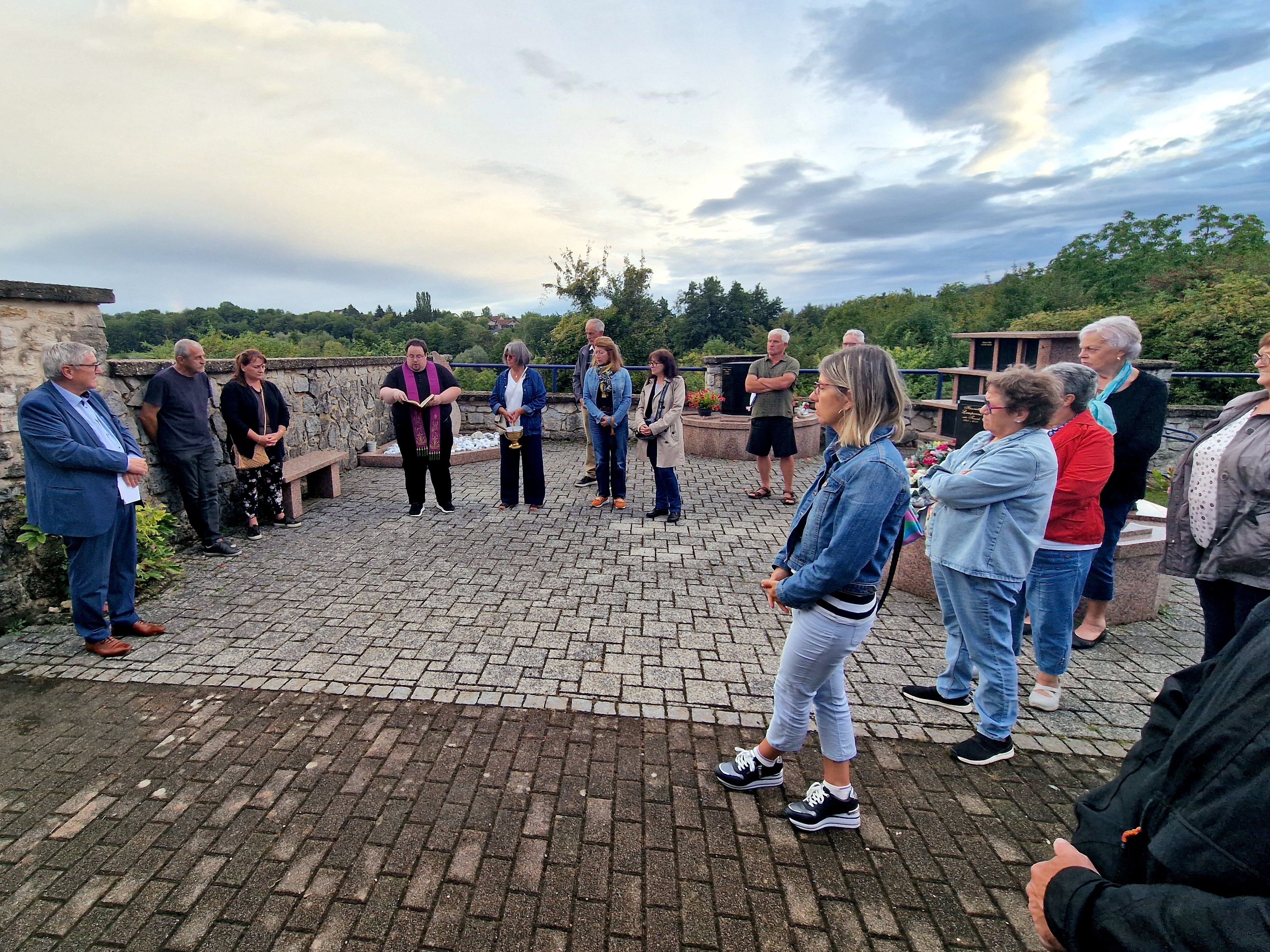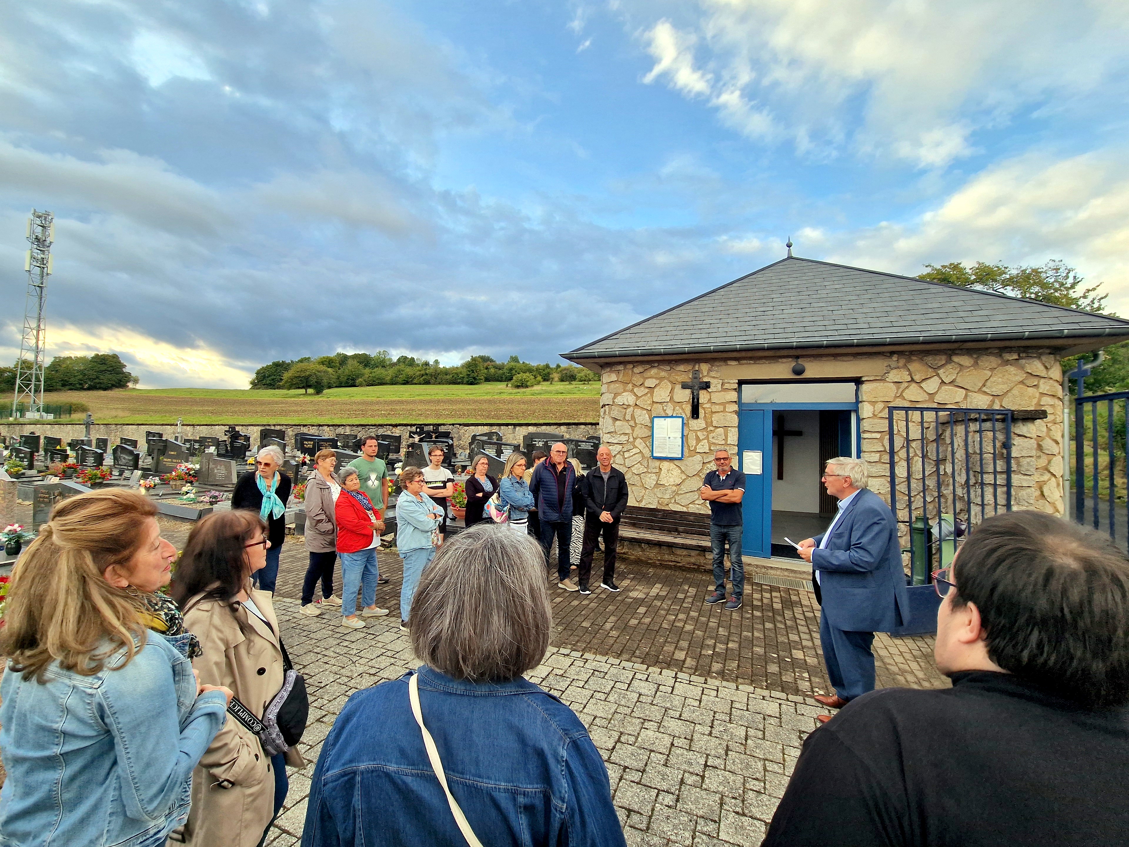 À l’issue de la réunion du conseil municipal ce vendredi 29 août 2025, les nouveaux aménagements effectués au dépositoire du cimetière communal ont été présentés aux conseillers municipaux, ainsi qu’au conseil de fabrique, à la chorale et aux bénévoles paroissiaux. L’abbé Noël BADO a procédé à la bénédiction des lieux.