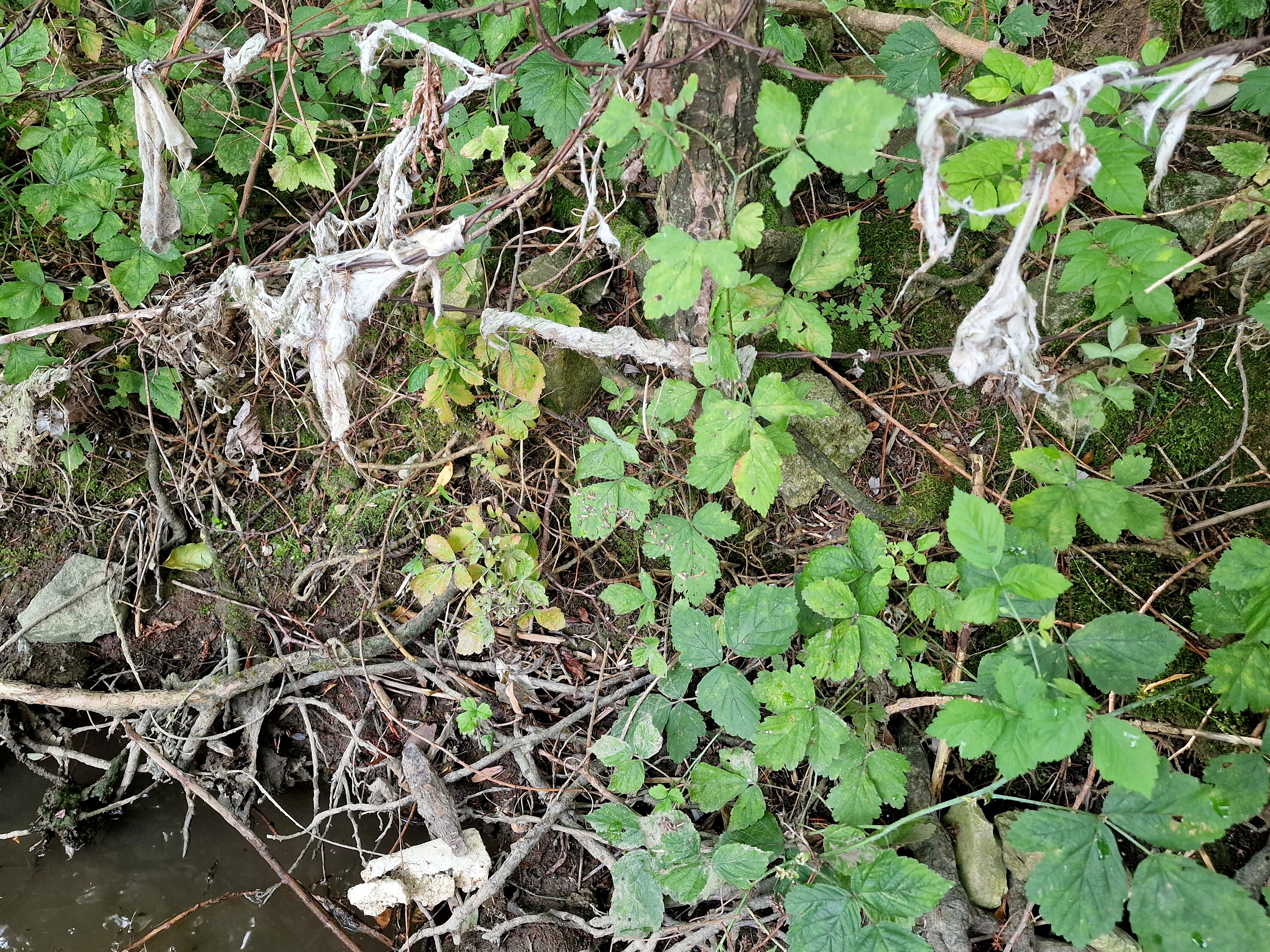 Par endroits, quelques indésirables lingettes étaient accrochées à la végétation ou s’incrustaient au lit du ruisseau. Rappelons que ces lingettes ne doivent évidemment pas être jetées dans la nature, ni même être évacuées dans les toilettes, contrairement aux allégations pseudo-écologiques de certains fabricants : celles-ci bloquent les installations d’assainissement et coûtent cher aux collectivités. Le Sydeme indique que les lingettes doivent être jetées dans les sacs bleus.